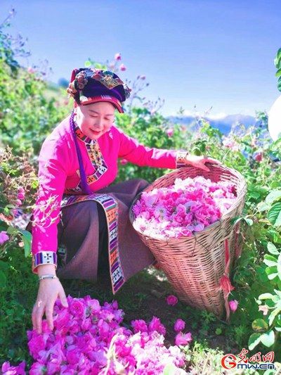 后来我成立了合作社,我们冒水村以“支部+合作社+农户+基地+公司”的模式,鼓励村民种植玫瑰。现在小金全县种植玫瑰15,000亩,覆盖了13个乡镇,46个村,带动了2万人种植玫瑰,一朵玫瑰花致富了千万家,我也被大家亲切地称为“玫瑰姐姐”。