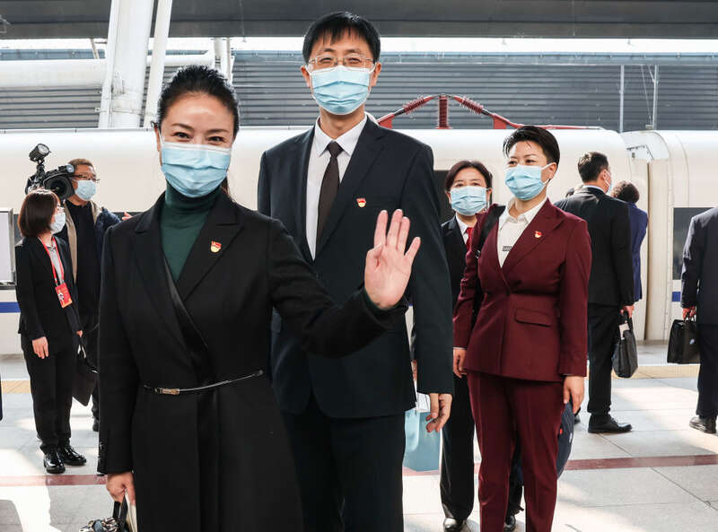 10月14日,来自山东省的党的二十大代表乘高铁抵达北京南站。新华社记者 陈建力 摄