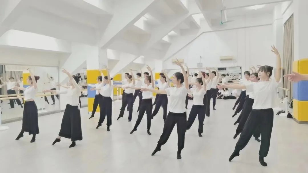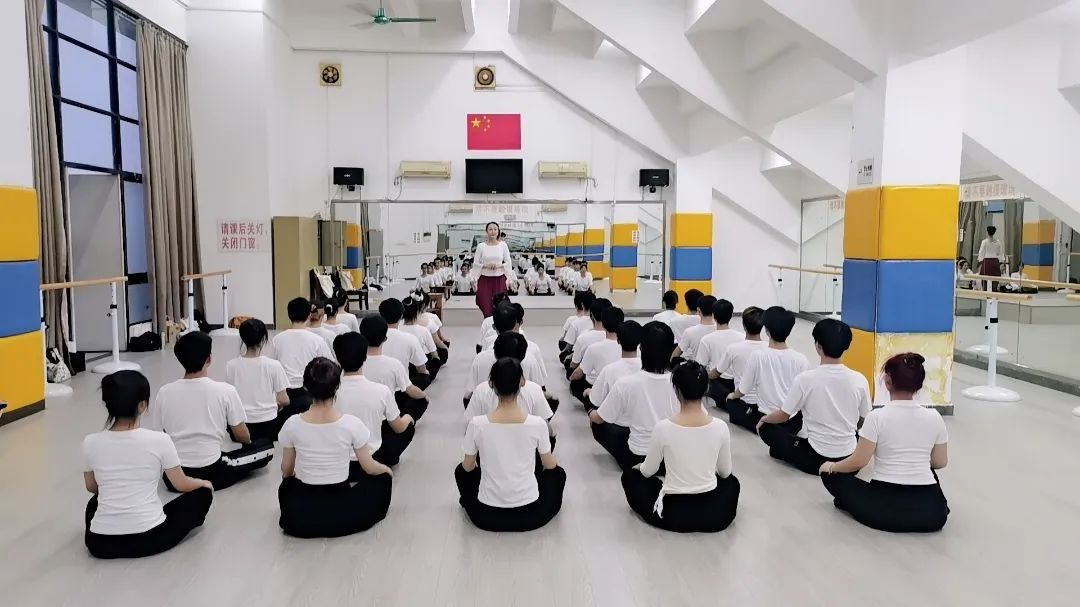 临近比赛,线上表演的形式让个体表情无限放大,重要性更加凸显。她一遍一遍纠正“硬板脸”,“每天都要训练这个,你们得把在课堂上学到的、练到的东西重复地过,形成条件反射。”董颖不厌其烦,“想象下面都是观众,你以往存储的记忆得调动起来,微笑,再微笑!”