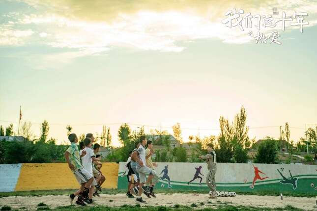 《热爱》的主人公更“朴素”。一名师范毕业的青年,带着“想考事业编”的理想从南京走进新疆偏远地区一中学任教,来到一群他一度喊不清名字的孩子面前。面对艰苦环境,他动过“撤退”的念头;老师究竟意味着什么,他也并非从一开始就真能理解透彻;甚至“足球教练”这个身份,多少有些纸上谈兵的花架子。可就是这位普普通通的小青年,带着他那支被县中学球队瞧不上的“娃娃联军”,在山坡、在树林、在乡野,因陋就简地练。没有条件就创造条件,实战不行就从零开始。小镇的孩子们忙完农活忙训练,年轻的教练躲在夜晚的宿舍夜夜练颠球自我加训。终于,在心往一处向、力朝一处使的日复一日后,这支小球队梦想花开。
