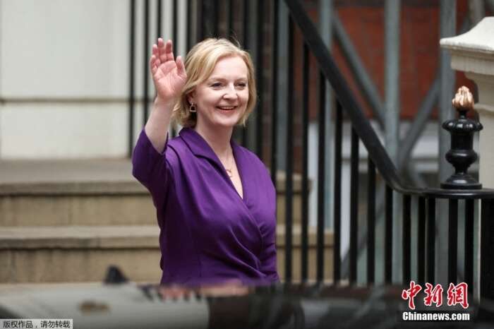 资料图:当地时间9月5日,英国议会下院保守党籍议员团体“1922委员会”主席格雷厄姆·布雷迪宣布,伊丽莎白·特拉斯当选英国保守党党首,将接任英国首相。图为当地时间9月5日,伊丽莎白·特拉斯在保守党总部外挥手。
