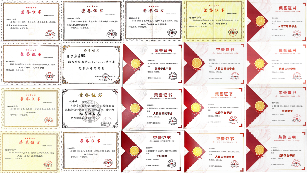刘茜麟,中共党员,现已保送至南开大学化学系。曾获第八届全国大学生生命科学竞赛科学探究类三等奖、第十三届北京市大学生化学实验竞赛二等奖、第八届北京市生物设计竞赛二等奖、第八届北京市生物基础知识二等奖、本科生创新创业项目(SRTP)市级立项一等奖、北京科技大学第二十三届“摇篮杯”大学生创新创业竞赛三等奖、北京科技大学三好学生、优秀学生干部、优秀共青团员、人民奖学金等荣誉。现任学生学习发展与指导中心无机化学组负责人,化学1902班宣传委员,曾任化生学院生活权益部部长。