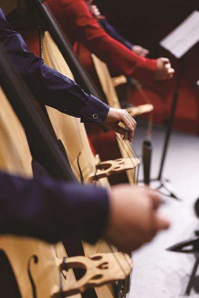 从声音表现来看,整台演出的听觉色彩与声场色调都体现出中国传统音乐文化的“音韵之美”。作为出生于上世纪八十年代的青年一代作曲家的王云飞,近年来成果斐然。本场音乐会的五首原创作品,不仅体现了作曲家深切领会中国传统音乐的精神内涵,而且对于中国民族器乐的发声特征和音色魅力有着充分的掌握与运用。首先每部作品都使用了弹拨乐器,弹拨类乐器具有中国音乐独特的魅力。其次,乐队低音声部中使用的贝斯,音色饱满沉稳,有效增强了低音效果。虽然由德国厂牌制造,但形制上特意设计了带有中国元素的低音拉弦乐器。再有,在乐队的乐席摆位上,让二胡声部更加贴近观众,所获得的音色更加符合音乐会的主题和曲目所需要的温润质感。这样的布局为了达到更好的声场平衡,更是难得一见。