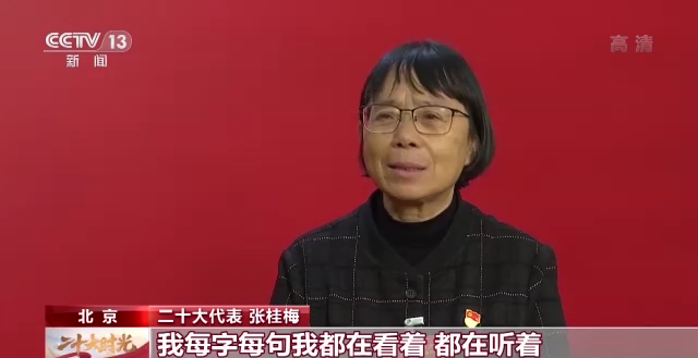 二十大代表 张桂梅:参加这个大会,听这个报告,实质上我是含着眼泪把它听完的。每字每句我都在看、都在听,尤其是教育的部分,办人民满意的学校,(让我)看到了教育的远景,我们也能看到山里的孩子们坐在青山绿水的教室里学一些东西。从这个报告中我们看到了党给我们提出了目标,给我们指明了方向。