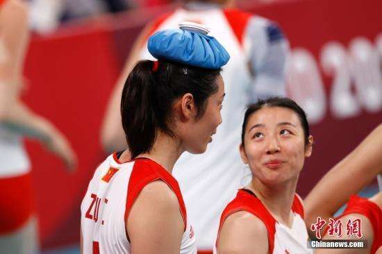 资料图:东京奥运会女子排球小组赛期间,女排队员朱婷的手腕紧紧地缠着绷带。