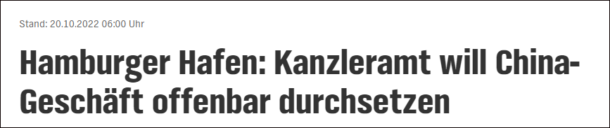 不过,在有关是否允许中远海运入股汉堡港Tollerort集装箱码头的问题上,德国总理朔尔茨持相反意见:不同于哈贝克和经济部,他选择站在德国企业界一边。