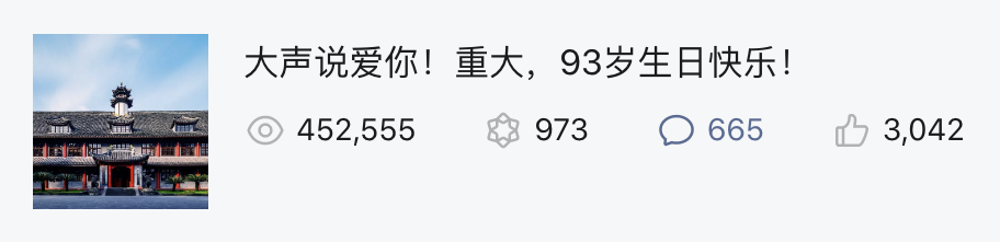 因为儿子曾是重大人,此生与重大有了“血肉之情”,重大的“举手投足”都让我非常关注,祝重大生日快乐!