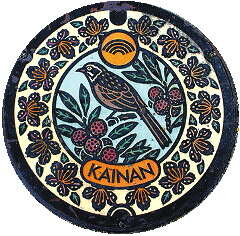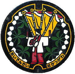 据说,最早的设计井盖发源于40多年前的冲绳县那霸市。1978年,那霸的街道上出现了一种污水井盖,虽然没有华丽的图案和色彩,却堪称日本第一块“设计井盖”——上面画满了张着嘴巴的卡通小鱼,代表那霸引以为傲的丰富海产,井盖中心则将那霸的城市公章上的文字变形成了圆形图案。