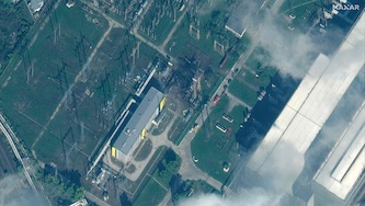 当地时间2022年10月12日,乌克兰基辅,卫星图像显示Tets-5电力设施的变电站出现了新的损坏。视觉中国 图