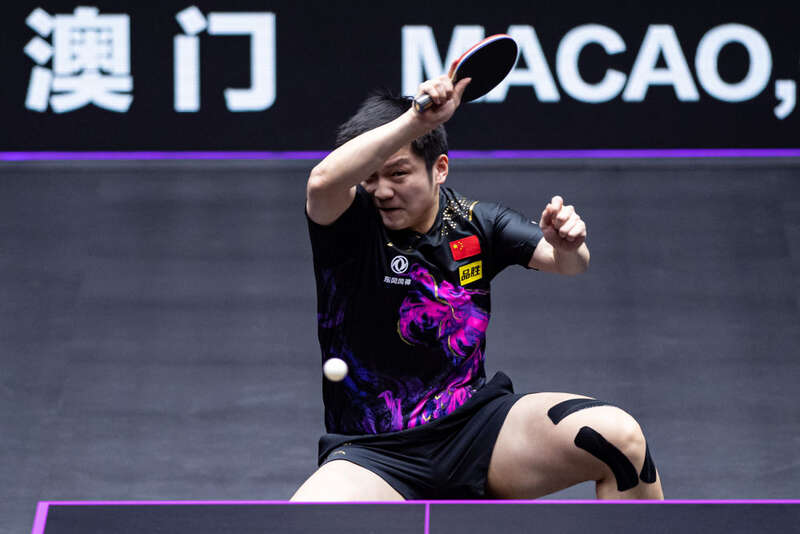 10月21日,中国选手樊振东在比赛中回球。新华社记者张金加摄