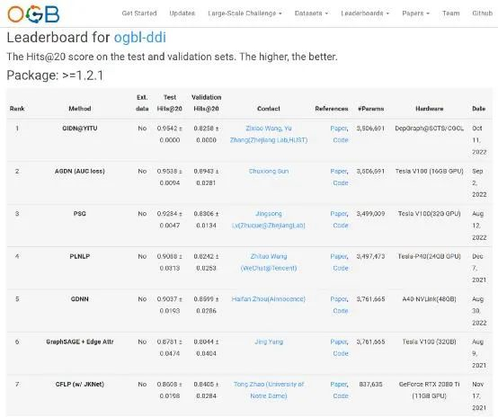 10月16日,华中科技大学计算机学院“大数据技术与系统国家地方联合工程研究中心”“服务计算与系统教育部重点实验室”曁“集群与网格计算湖北省重点实验室”张宇副教授带领的图计算团队在自主研制的“亿图”图计算平台上研发的新型图学习模型GIDN,在2022年国际开放图基准数据集OGB (Open Graph Benchmark) 挑战赛的链接属性预测赛道中,在药物联合作用预测和作者合作关系预测两个领域的数据集上预测精度分别达到0.9542和0.7096,分别打破世界记录,排名世界第一。