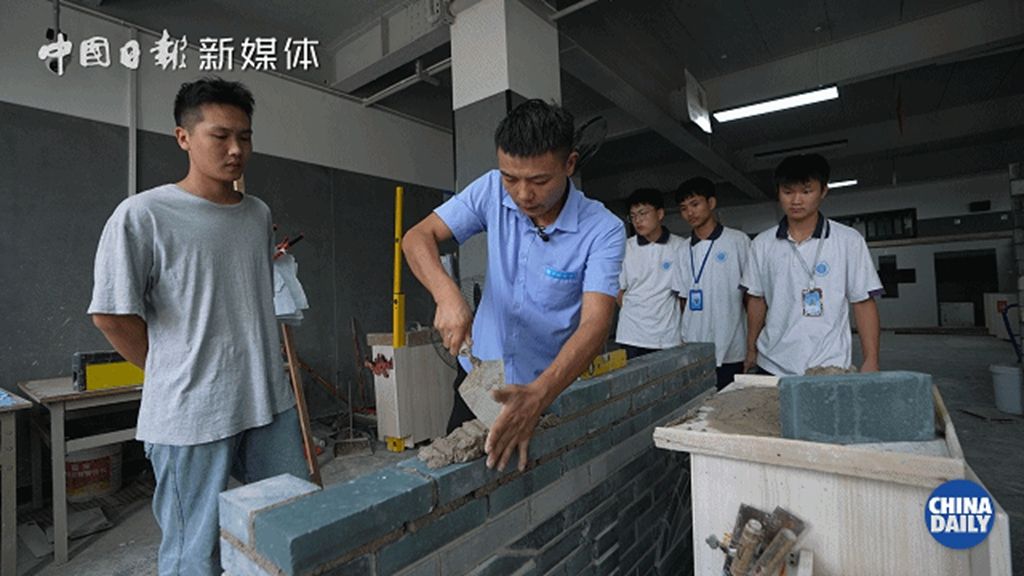 砌墙十年,小泥瓦匠邹彬已成长为大国工匠,看着篮球场上的学弟们,他感叹道:“我的青春都在砌筑这一块。”