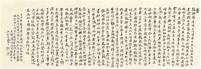 张择端《清明上河图》卷,宋画之冠也。然临之者众精工者寡,……明仇英伪临本,其楼台亭阁车马人迹貌不合,神全无,……然所谓仇本之后,江阴岭南者竟多知伪仇本而不知真张本,岂不谬哉!更有逐利者,粗制滥造,征庸工日夜描摹,张氏名作遂向俗而生,……今之流传海外者多为此属。三晋梁秀嶷,苦临张公《清明上河图》、《西湖争标图》……其奋勇拼搏之精神诚为后学者所范。……后余又考证元王振鹏临《龙舟争标图》之母本乃张择端《西湖争标图》,更得秀嶷之笔墨神功印证,斯为幸耶!今观秀嶷临作,古意浓郁,形神兼备。俱下王氏临本一等,直可与冯承素临兰亭之典故相比。……昔董其昌题画有言:不可使延津之剑久判雌雄。盖自谓既得李伯时《莲社图》,又得赵子昂《鹊华秋色图》,龙泉、太阿二剑系一身, 千古佳话也。今秀嶷通灵之笔重现择端双璧,诚不朽之创,惊世之功,未知张公有灵,夫复何言?余亦有幸,因上河图结缘于秀嶷再度为其书跋,以志画坛之殊胜并寄伯仲之谊矣。