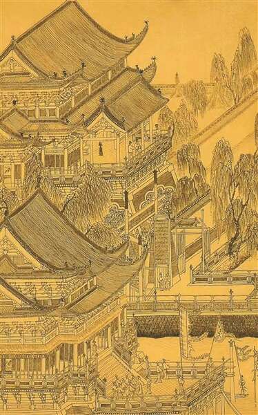 1.全卷为非常写实的风格,用界画绘制建筑和舟桥。所绘赛事活动均与《东京梦华录》所记载的完全相符;