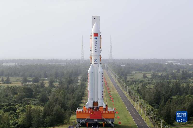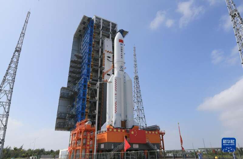 10月25日,梦天实验舱与长征五号B遥四运载火箭组合体转运至发射塔架。