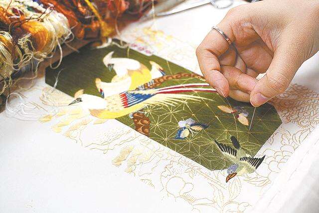 在梁晓曼的“南粤广绣”工作室中,披肩、旗袍、围巾、耳环、胸针、发箍等在她眼中都可以成为制作广绣的载体。“喜欢广绣的年龄层不应局限在中老年人,年轻化的广绣生活物品或许可以吸引年轻群体的目光。”梁晓曼认为,“作为年轻一辈的非遗艺术家,可以大胆跳出既有创作框架。”