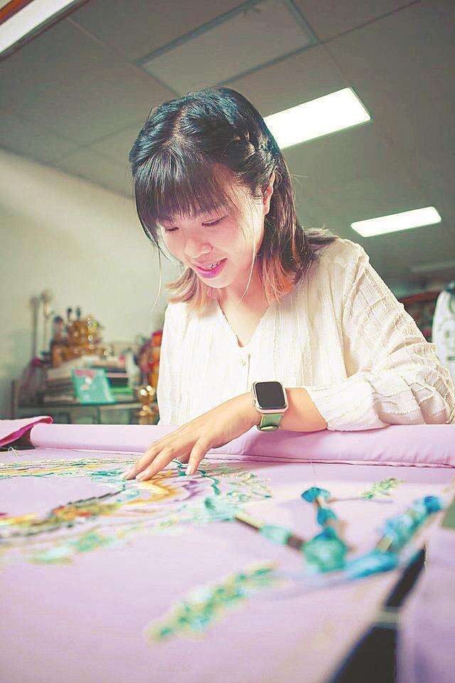 孩童时,梁晓曼看着蚕丝线在长辈指尖上飞舞,充满好奇,逐渐跟随长辈系统学习广绣针法。在学习期间,梁晓曼也看到了广绣面临的困境:“如果广绣仍束缚在传统的框架中,不被发掘和认知,便容易被世人遗忘。”
