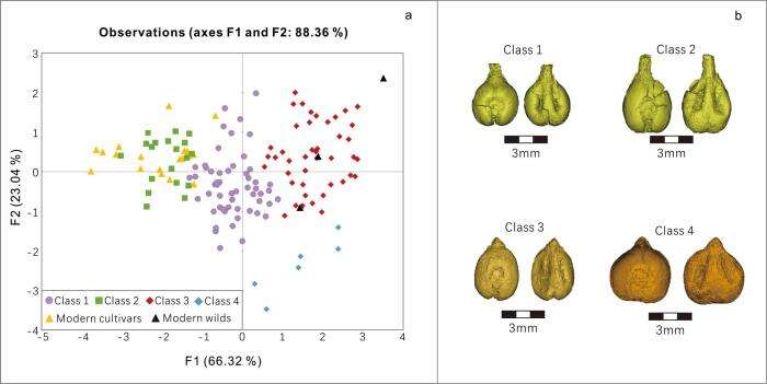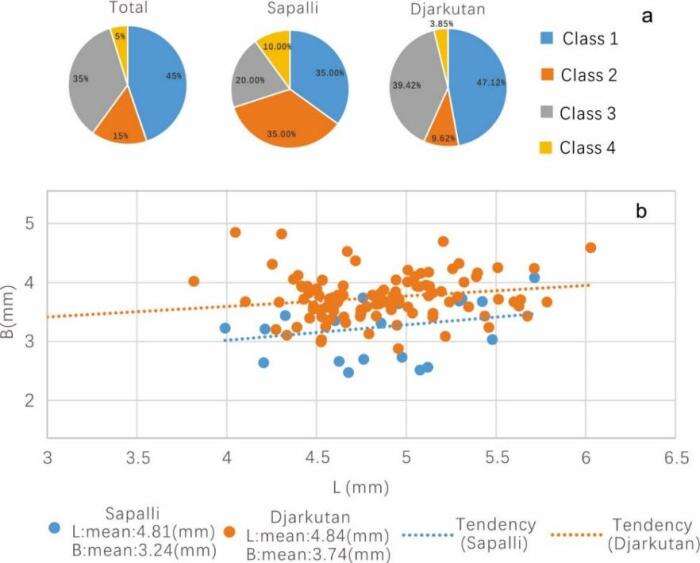 本次研究依据葡萄种子长度、宽度、茎长等多组形态测量数据,通过多种科技分析等统计方法,对乌兹别克斯坦两处遗址中出土的多种葡萄种子进行形态识别,并结合碳十四测年与当地考古文化记录,对当地青铜时代文明种植的葡萄类型及早期园艺活动进行综合研究。