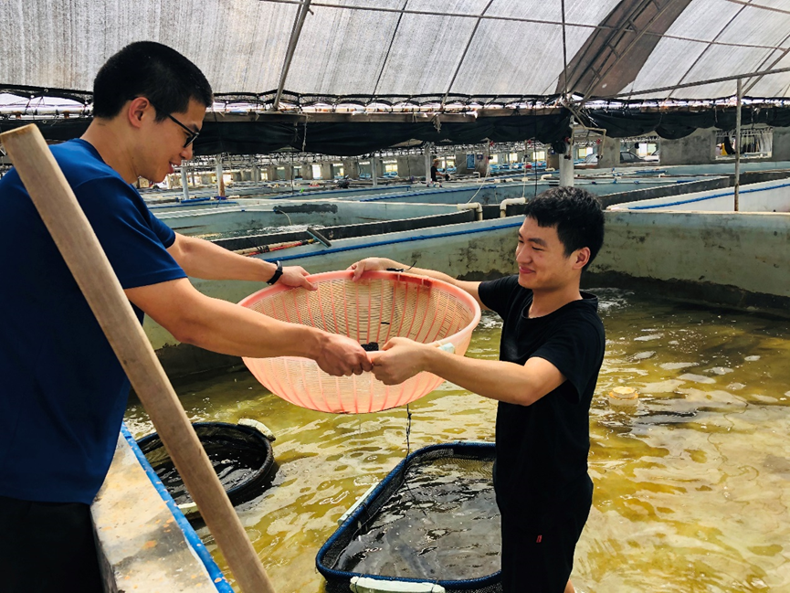 他将艰苦条件看作意志的磨刀石,把枯燥的日常工作化作每分每秒的学习。在基地相对艰苦的条件下,他完成一个又一个工作任务,进行一个又一个育种实验,在三年里累计培苗数十次,构建了多种石斑鱼家系,革新石斑鱼精子的体外保存与应用技术,让技术创新之花在鱼塘边绽放,将论文写在祖国大地上。
