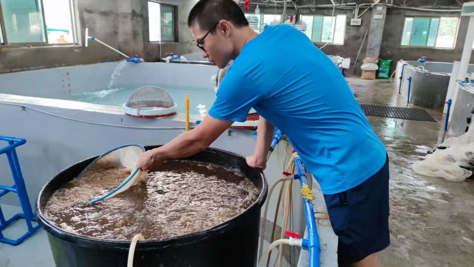 ▲杨扬进行饵料的清洗和消毒