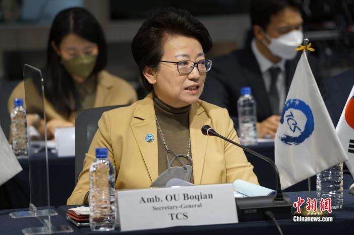 图为中日韩合作秘书处秘书长欧渤芊致辞。刘旭 摄