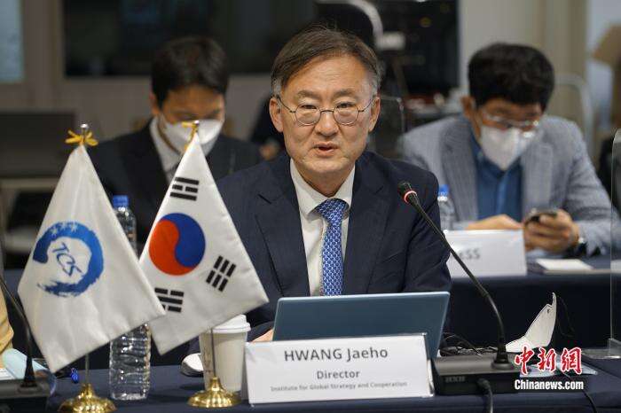 图为韩国全球战略合作研究院院长黄载皓致辞。刘旭 摄
