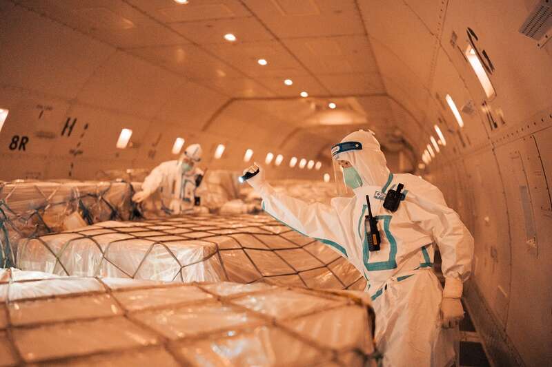 江苏边检总站无锡边检站移民管理警察为货运航班办理边防检查手续,实现通关“零待时”。宋祖帅/摄