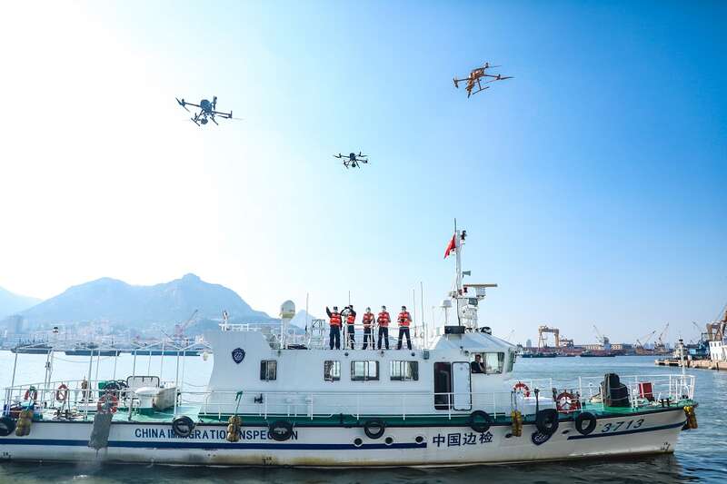 山东边防检总站石岛边检站联合驻地单位强化口岸立体管控,维护国门口岸安全。宋子怡/摄