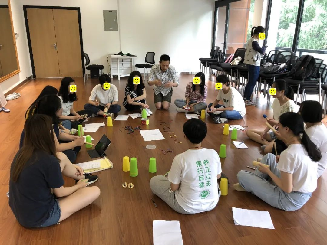 通过几年来的教学与服务实践,团队也逐渐摸索出一些学科融合的具体方式。“课程思政”示范课程《原本性音乐教育与社区服务》,运用多种音乐教学法和丰富的教具,关注具有不同特征的服务人群对于音乐的感受力,达成音乐素养的学习,满足服务对象的需求。
