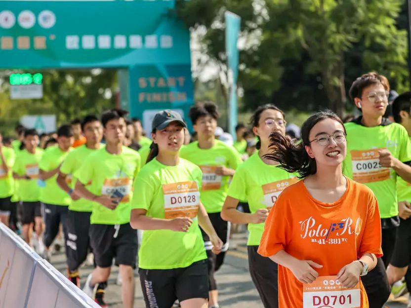 青春组和学生组分别身着橙色、绿色参赛服,校友与教职工身着蓝色参赛服,大家纷纷以奔跑的方式弘扬体育精神,展现青春活力。