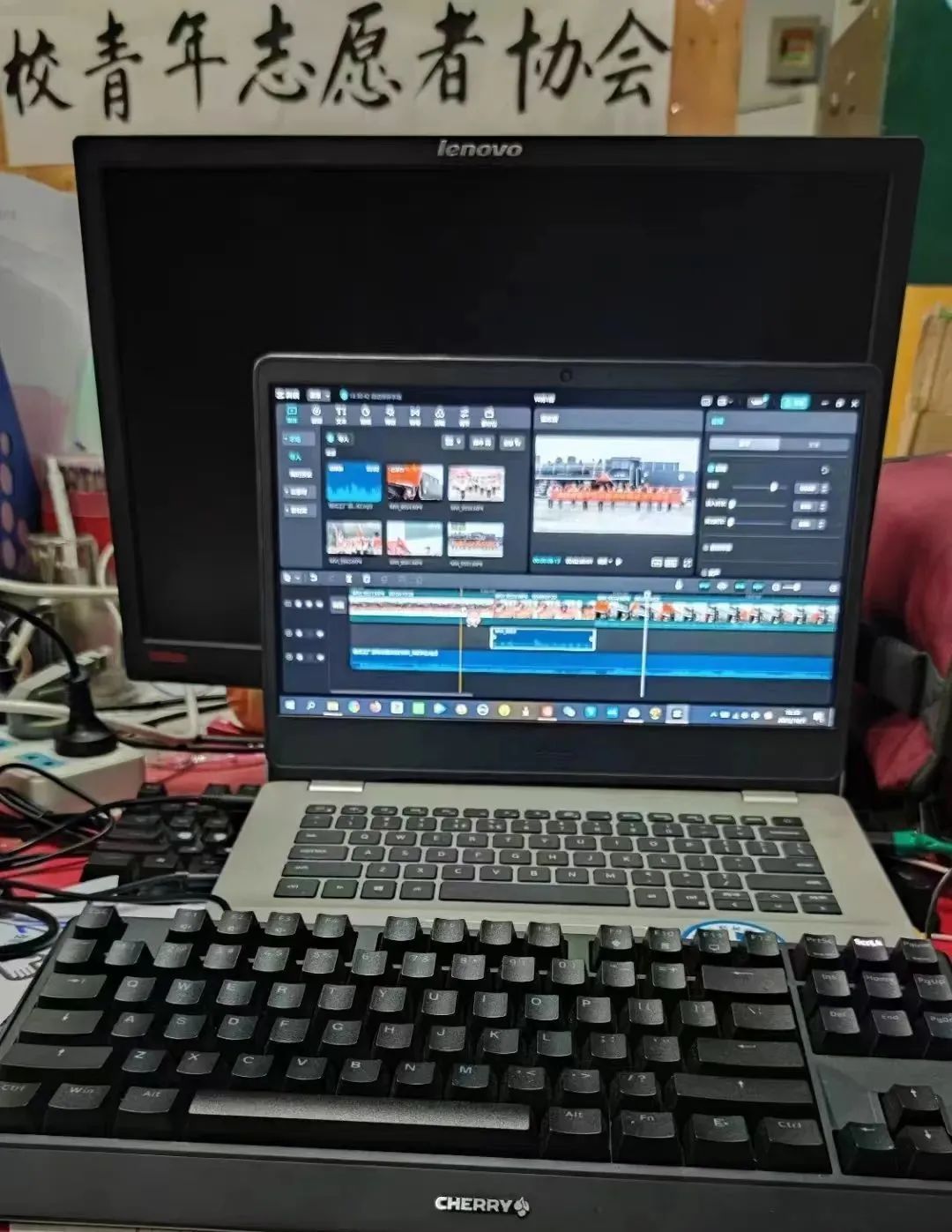 (图为韩超俊在剪辑视频)