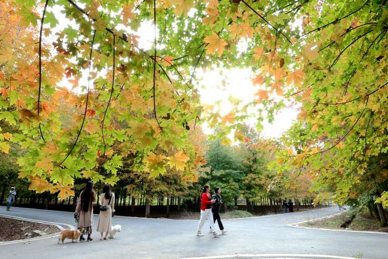 10月22日,游人在江苏省南京明孝陵景区赏叶游玩。新华社发(张梦 摄)