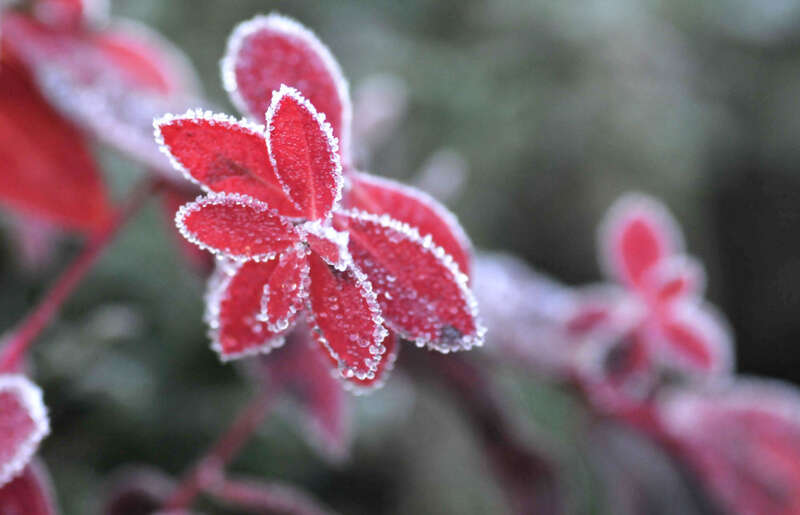 10月16日,在云南省迪庆藏族自治州香格里拉市建塘镇,植物叶子上挂着白霜。新华社发(余富全 摄)