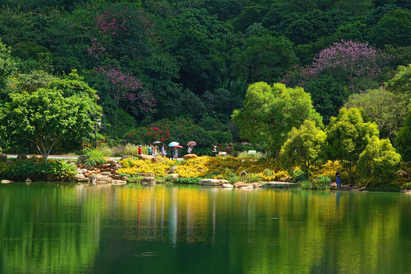10月4日,市民在广西南宁市青秀山公园的青山绿水间游玩。新华社发(喻湘泉 摄)