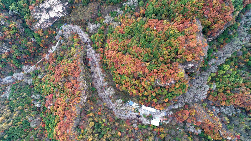 这是10月5日在河北省石家庄市平山县拍摄的驼梁自然风景区秋景(无人机照片)。新华社发(梁子栋 摄)