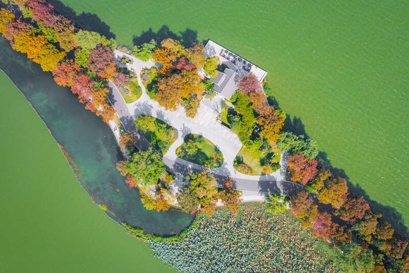 10月25日拍摄的江苏省南京玄武湖公园秋景(无人机照片)。新华社发(苏阳 摄)