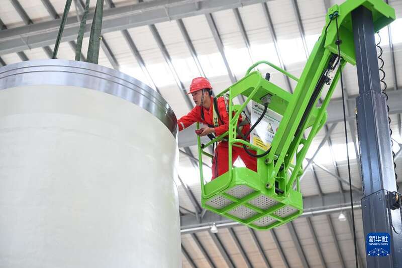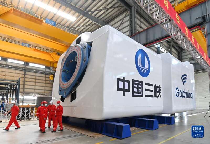 10月13日,金风科技海上风电机组在福建三峡海上风电国际产业园下线。