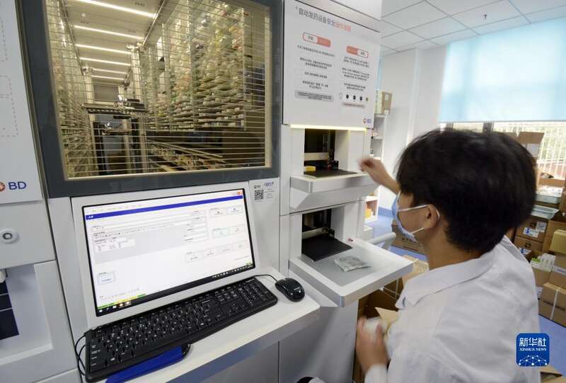 北京市丰台区大红门社区卫生服务中心安装了智能化配药系统,高效率服务社区群众(10月26日摄)。