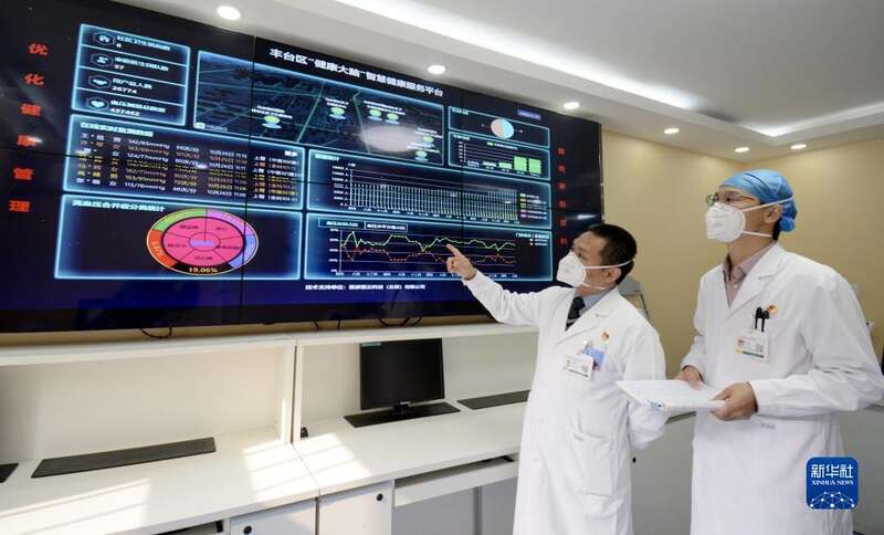 北京市丰台区马家堡社区卫生服务中心的医生在应用“健康大脑”智能监测系统了解居民健康状况(10月26日摄)。