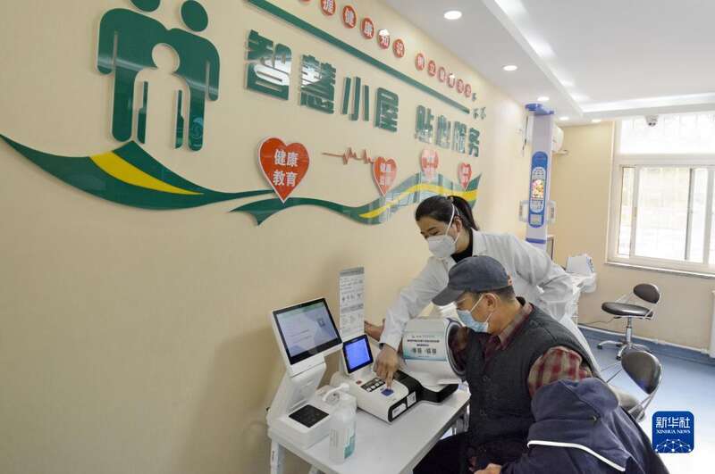 居民在北京市丰台区马家堡社区卫生服务中心的健康智慧小屋检查身体(10月26日摄)。