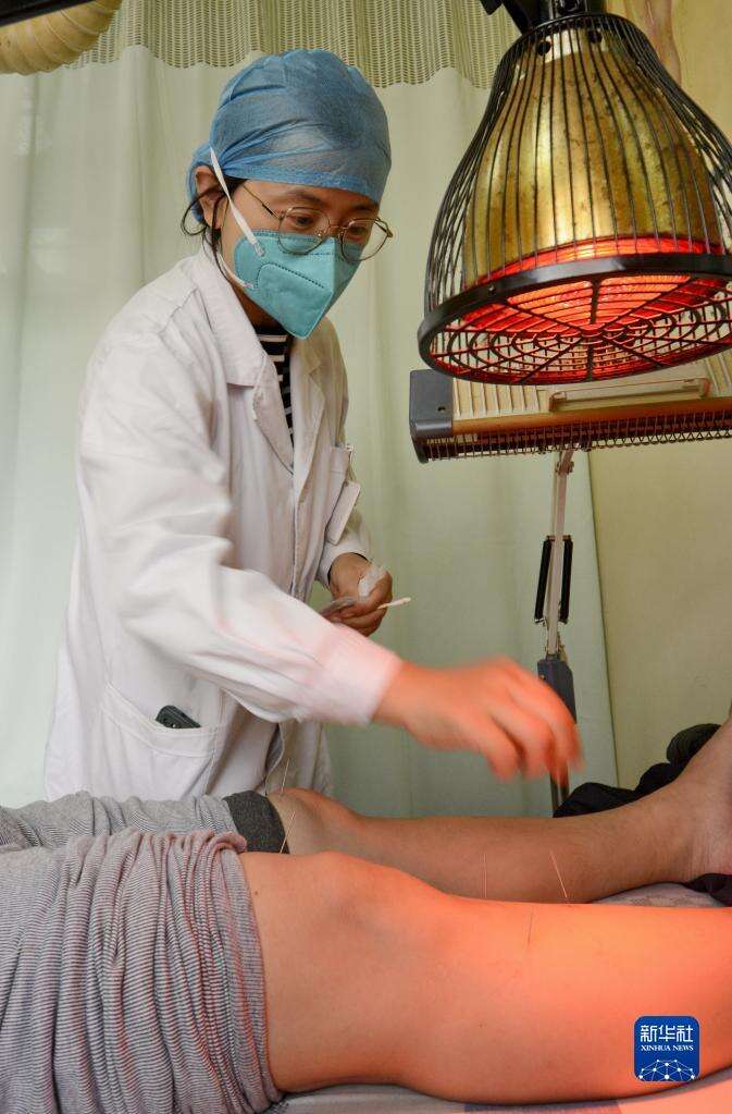 北京市丰台区马家堡社区卫生服务中心的医生在为社区群众提供中医针灸服务(10月26日摄)。