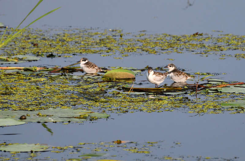野生鸟类在生态环境优美的微山湖栖息(2022年8月23日摄)。新华社记者 徐速绘 摄