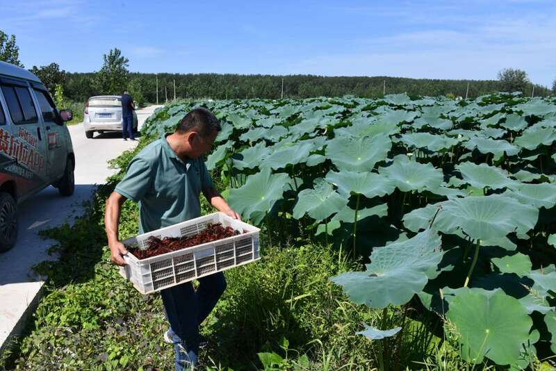 “我承包了150亩藕田,藕池里放养小龙虾。”高楼乡高楼村村民杨海青说,自家农产品不愁销路,在田里“捞起”,到路边就“卖光”,每亩能赚上万元。种藕基本不使用农药,对水体影响小,小龙虾以烂藕为食,省了大部分饲料钱。