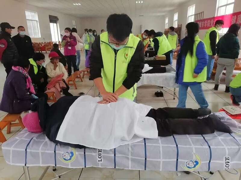 昆明城市学院教育学院运动康复和学前教育专业的师生,为东村社区居民提供了按摩触诊服务。昆明城市学院供图