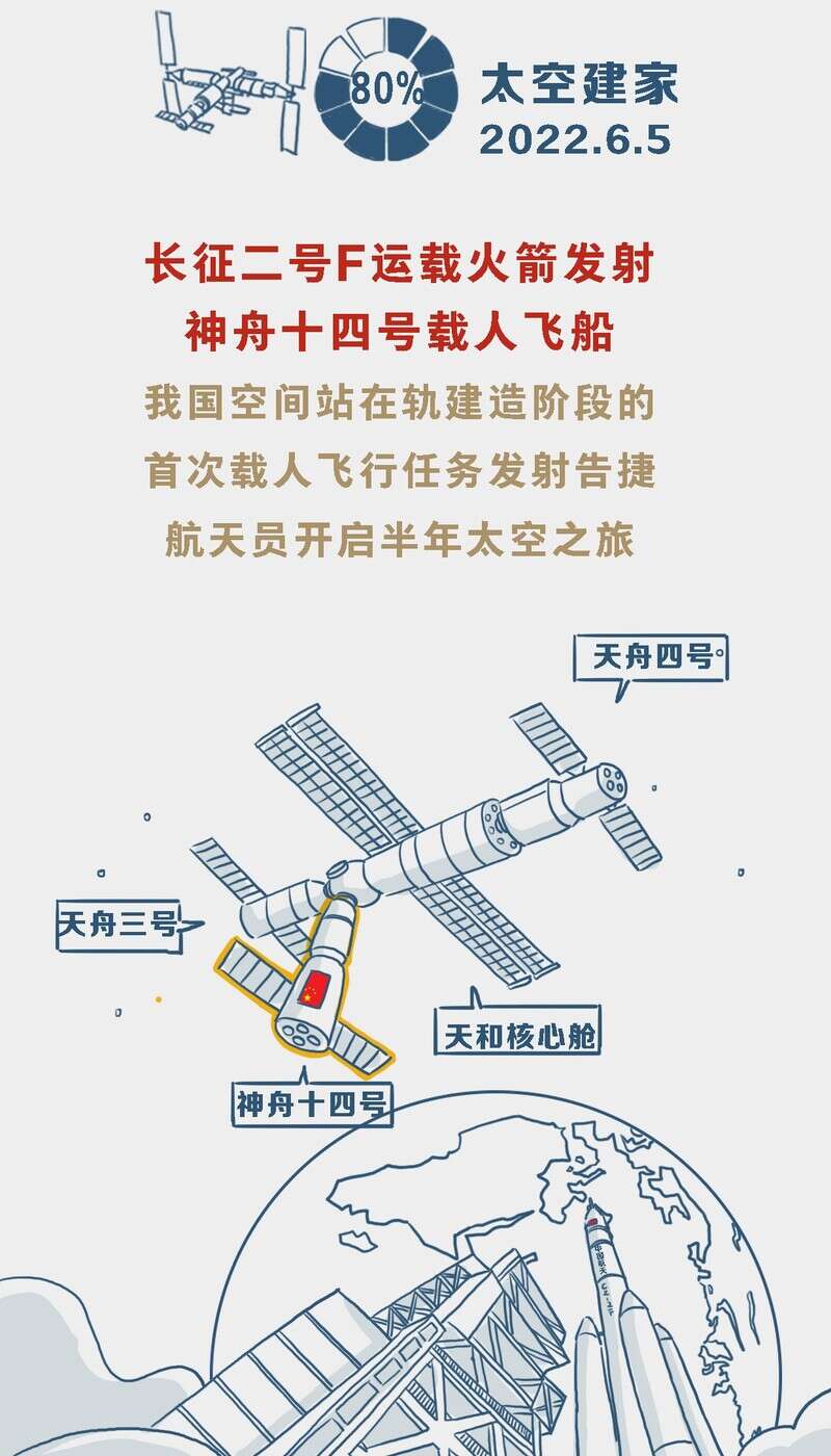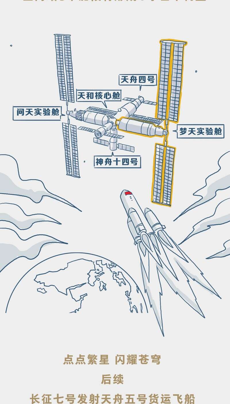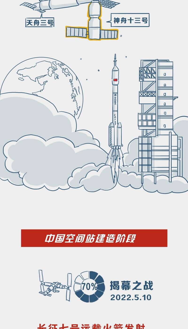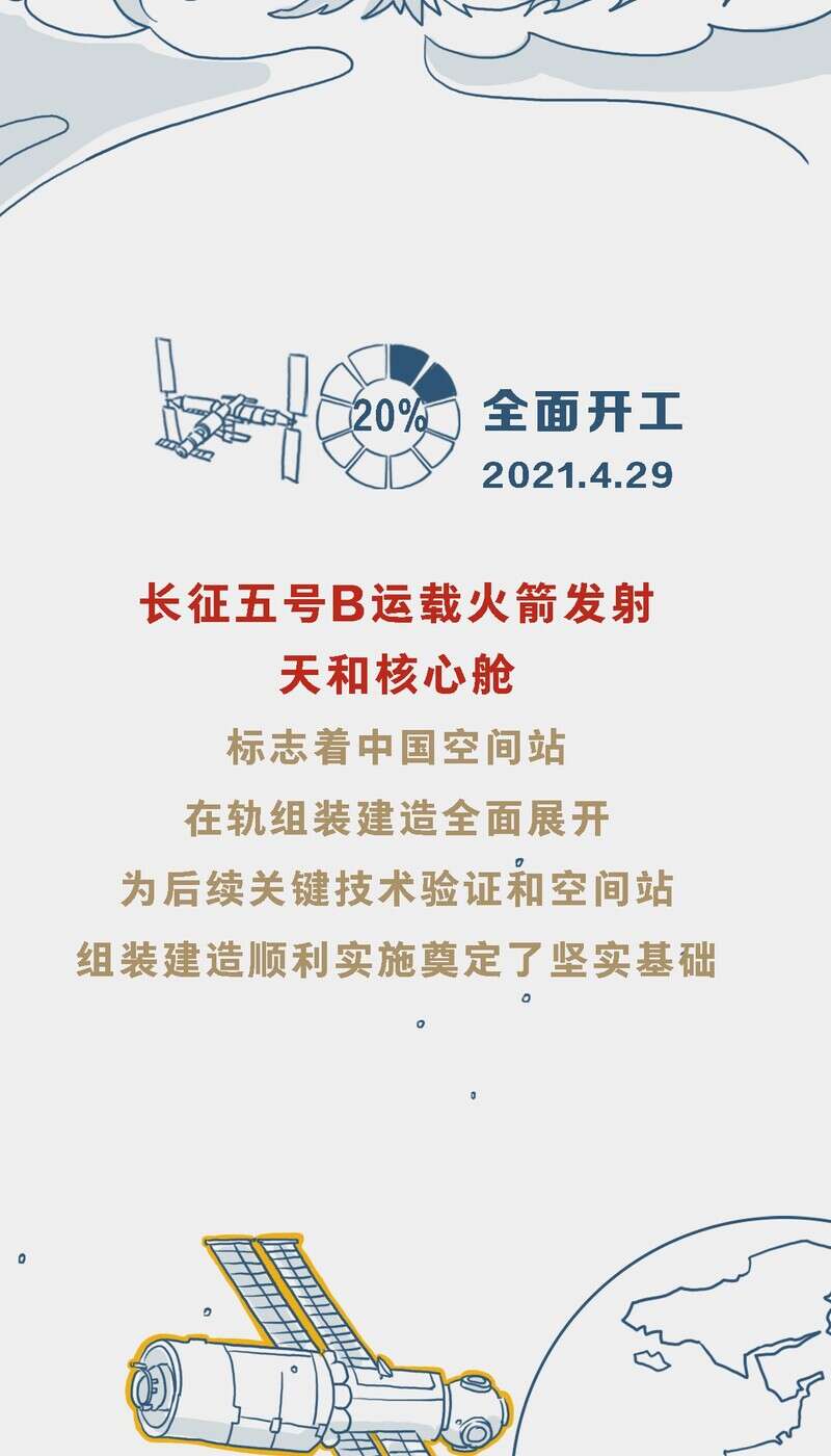 中国青年报客户端北京航天城10月31日电(董佳莹 钱航 中青报·中青网记者 邱晨辉)北京时间10月31日,长征五号B遥四运载火箭成功将梦天实验舱送入预定轨道。天和核心舱、问天实验舱、梦天实验舱三舱将形成“T”字基本构型, 标志着我国空间站“T”字基本构型组装完成,载人航天“三步走”发展战略迈出了重要一步。点开进度条,让我们一起回顾空间站在轨建造历程。