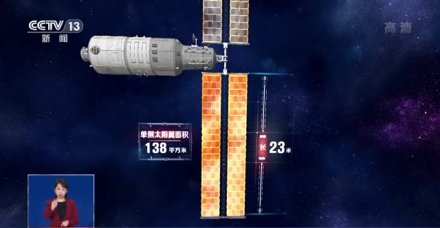 接下来,再后面,就是梦天实验舱的资源舱。这里有发动机、推进剂,主要为梦天实验舱提供动力。资源舱后端的这对“翅膀”,是梦天实验舱的大型柔性太阳翼,制造材料与核心舱、问天舱的太阳翼相同,面积也和问天舱太阳翼一致,展开后单侧太阳翼长约23米,面积约138平方米。