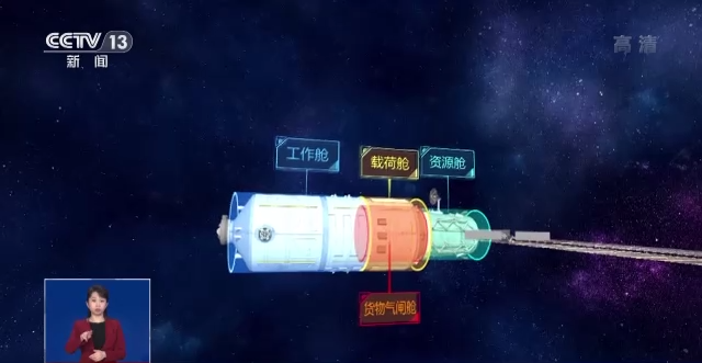 梦天实验舱主要由四部分组成,分别是工作舱、货物气闸舱、载荷舱,还有资源舱。