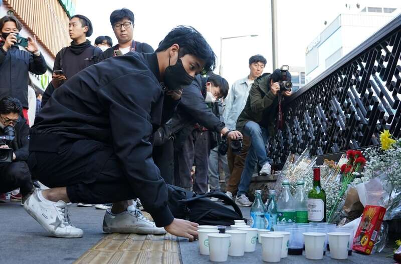 首尔民众悼念梨泰院踩踏事故遇难者 图源:澎湃影像