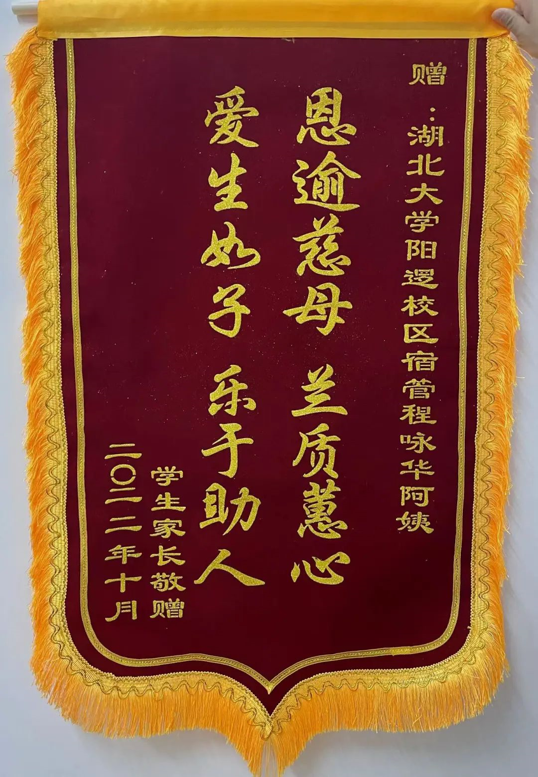 将锦旗和和感谢信送到学校