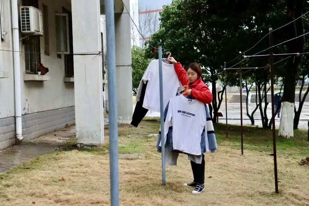 ▲图为程咏华帮同学收衣服